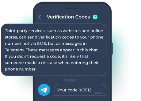 No, we provide our clients with authorization via Telegram’s official system. That way, the code is sent from the verified "Verification Codes" channel, not from a bot. This is an important security measure to protect against fake messages.